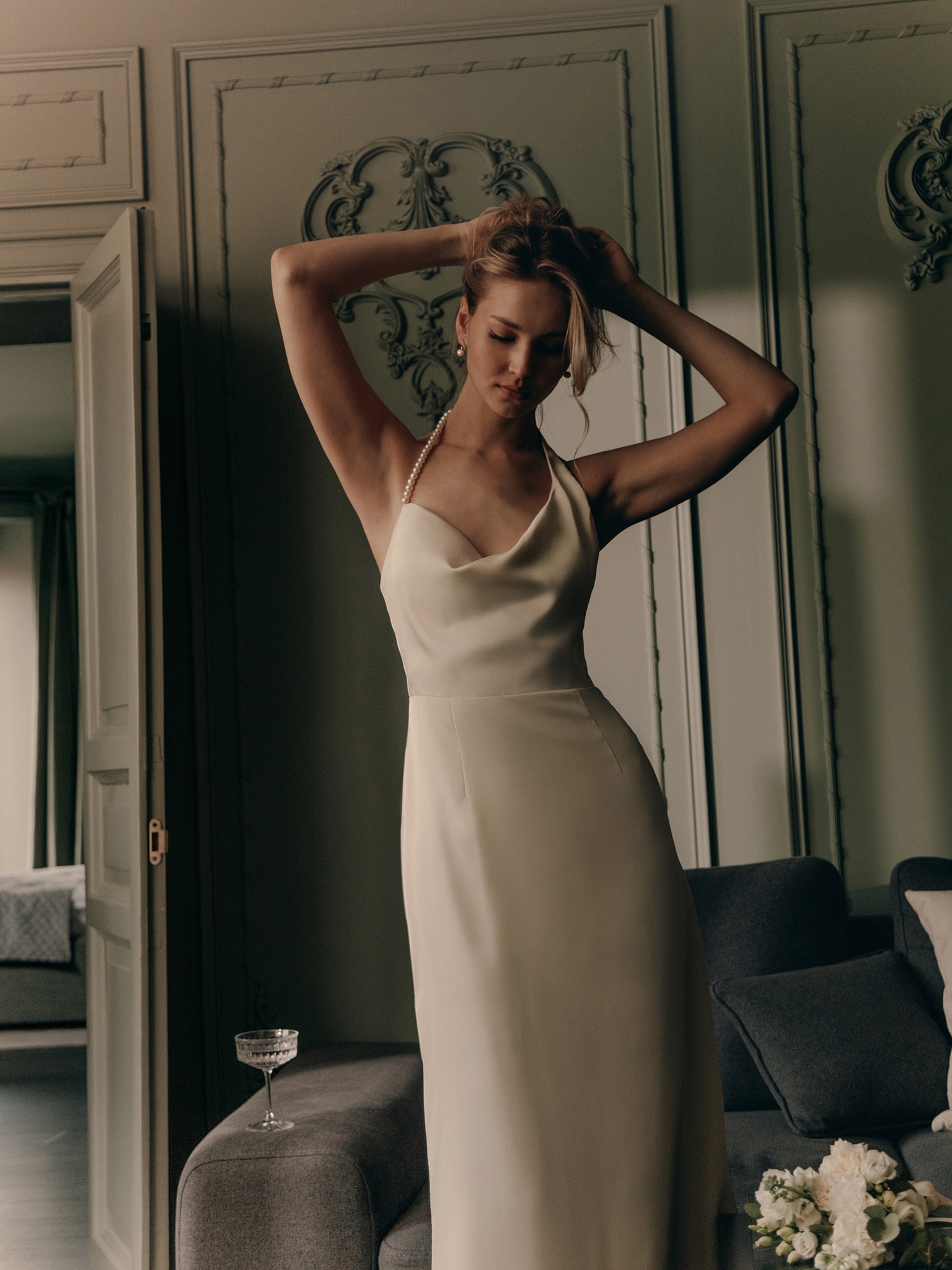 Satin Midi Dress With Pearl Halter Lichi Online Fashion Store